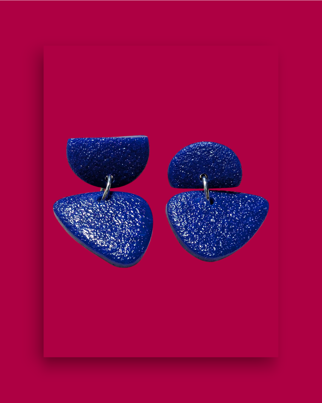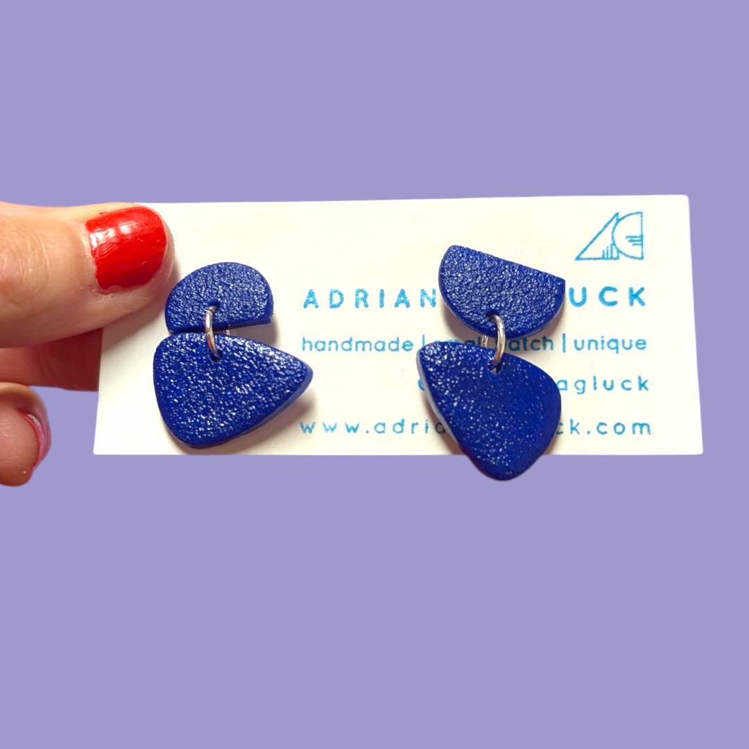 Made with handmade, hand-blended, and hand-textured navy blue polymer clay, gloss varnish, and nickel-free posts.